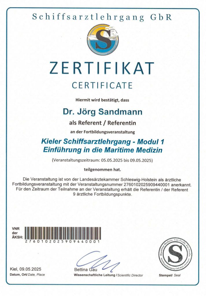 Ein großes Interesse galt immer der Notfallmedizin, so dass viele Stunden auf Rettungsmitteln verbracht wurden. Viele Erfahrungen und viele Erlebnisse kommen aus diesen Tagen, sei es auf der Straße, sei es in der Luft und seit Travemünde auch auf See. So haben wir einen Notfallbogen auf die hausärztliche Praxis adaptiert, der den Anforderungen des Rettungsdienstes entspricht und auch mit dem Rettungsassistenten Christian Grobecker von der Lübecker Berufsfeuerwehr gemeinsam das Travemünder Protokoll für die Deutsche Gesellschaft zur Rettung Schiffbrüchiger entwickelt.